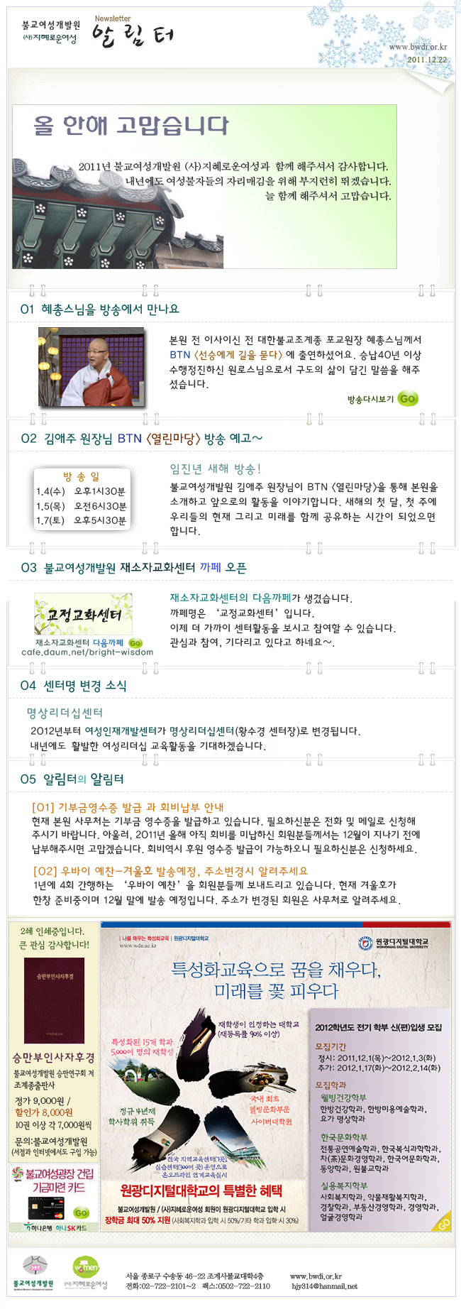 copyright(c)2010 ºÒ±³¿©¼º°³¹ß¿ø Buddhist Women's Development Institute all right reserver