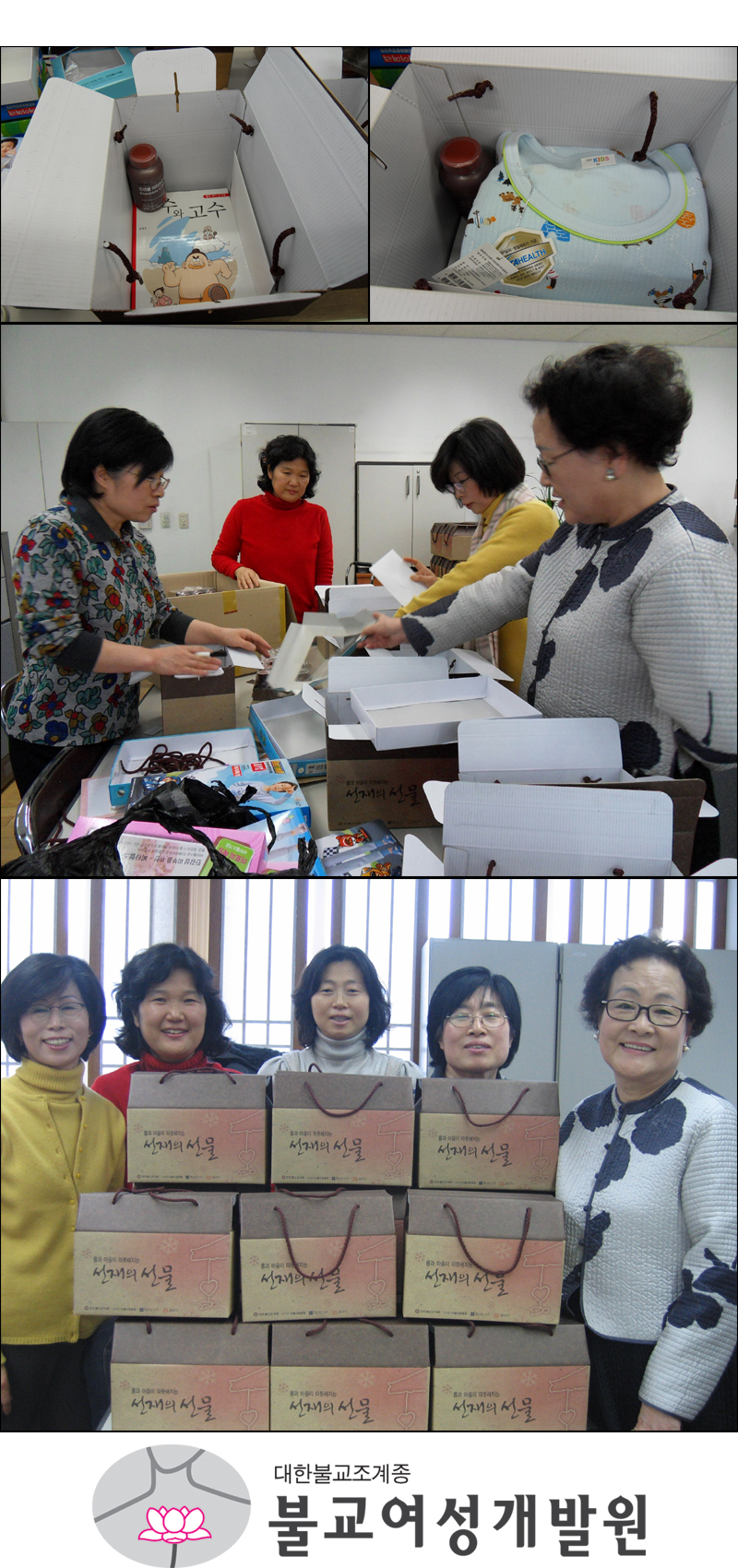 Áö³­ 12¿ù 23ÀÏ, °øÀ͹ýÀÎ ¾Æ¸§´Ù¿îµ¿Çà¿¡¼­ ÁÖÃÖÇÏ´Â <¼±Àç ¼±¹°º¸³»±â ÈÄ¿øÇà»ç>¿¡ ºÒ±³¿©¼º°³¹ß¿øµµ µ¿ÂüÇß½À´Ï´Ù. µû¶æÇÑ °¨µ¿À» ÁÖ´Â µ¿È­Ã¥(Çϼö¿Í °í¼ö)°ú ¿µ¾çÁ¦, ³»º¹, ¾ç¸», ±×¸®°í ²Þ°ú Èñ¸ÁÀÌ ´ã±ä ÆíÁö¸¦ ´ã¾Æ¼­ ´Ù¹®È­°¡Á¤ÀÚ³à 40¿©¸í¿¡°Ô Àü´ÞÇß½À´Ï´Ù. (Æ÷Àå¹Ú½º¿Í ¿µ¾çÁ¦, Ä«µå´Â ¾Æ¸§´Ù¿îµ¿Çà¿¡¼­ ¸¶·ÃÇØÁÖ¾ú°í, ºÒ±³¿©¼º°³¹ß¿ø°ú ȸ¿ø ¹× ºÀ»çÀÚµéÀÌ Ã¥, ³»º¹, ¾ç¸» ÈÄ¿ø°ú ÇÔ²² ÆíÁö±Û ÀÛ¼º, ¼±¹°Æ÷ÀåÀ» ÇØÁּ̽À´Ï´Ù.)