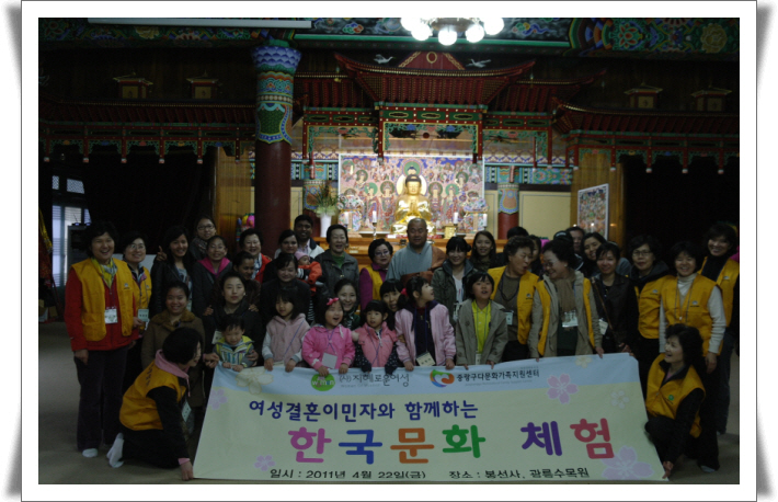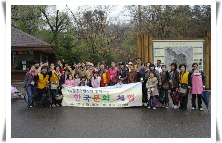Áö³ 4¿ù 22ÀÏ(±Ý) ¿ÀÀü9½ÃºÎÅÍ ¿ÀÈÄ 4½Ã±îÁö ºÀ»ç´Ü¿ø, °áÈ¥ÀÌÁÖ¿©¼º, ±×¸®°í ÀÚ³à(ÃÑ 44¸í)µé°ú ÇÔ²² Çѱ¹¹®È üÇèÀÇ ½Ã°£À» °¡Á³½À´Ï´Ù.