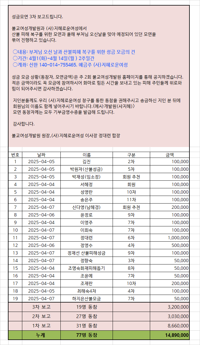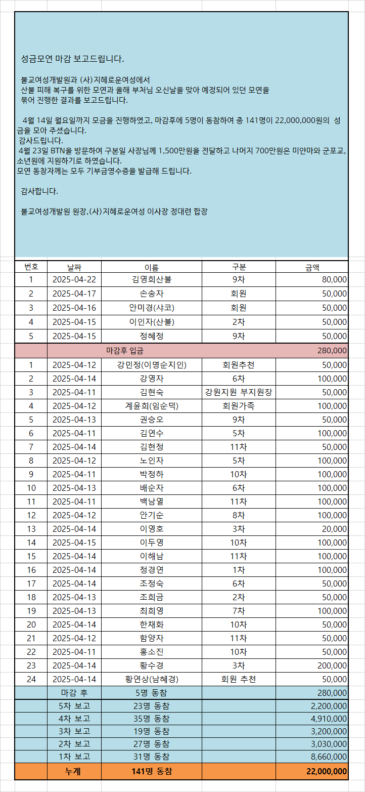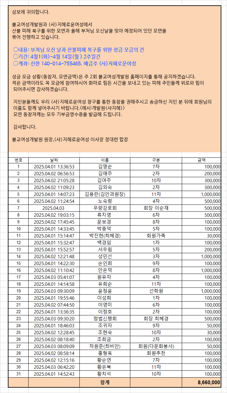 »êºÒ ÇÇÇØ º¹±¸¸¦ À§ÇÑ ¼º±Ý ¸ð±Ý ¹× ºÎó´Ô ¿À½Å ³¯ ±âºÎ¸¦ À§ÇÑ ¸ð¿¬   2025-04-03 (¸ñ) 09:54
