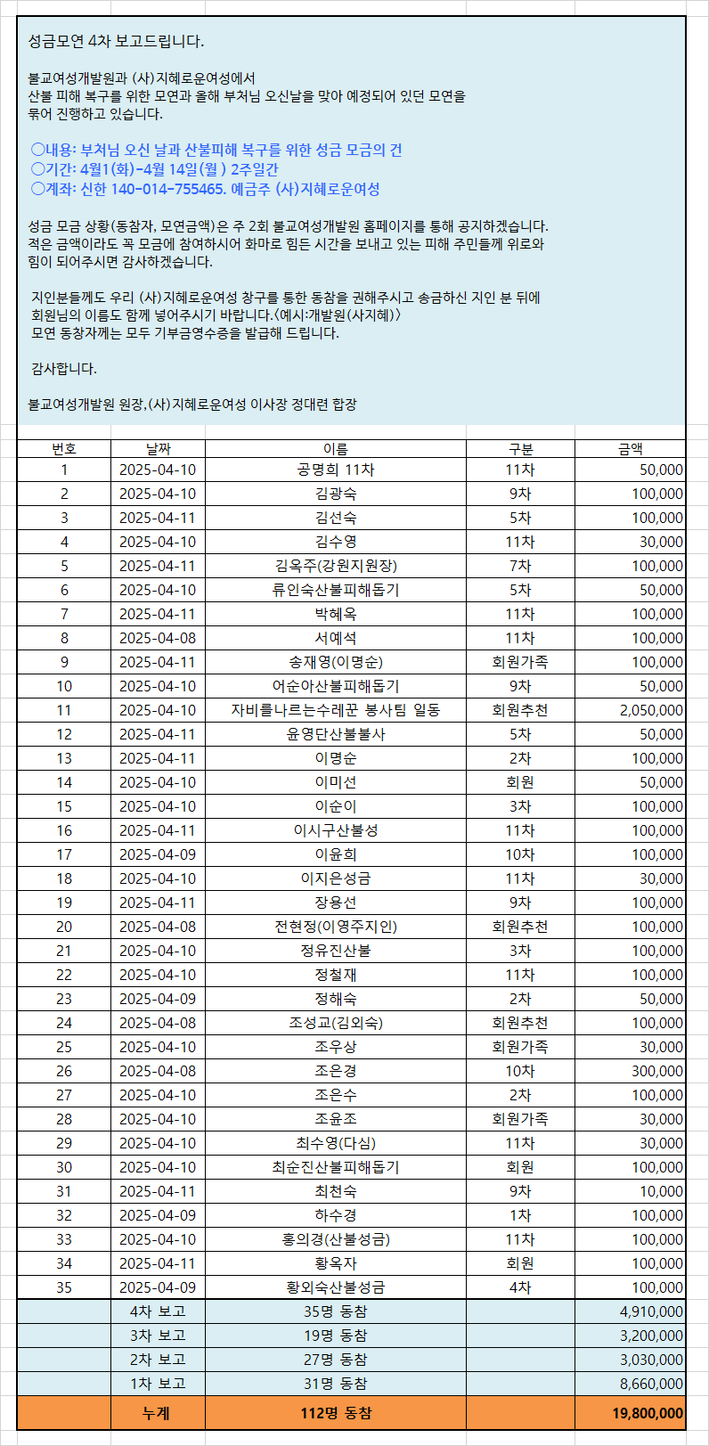 ¼º±Ý ¸ð±Ý »óȲ(µ¿ÂüÀÚ, ¸ð¿¬±Ý¾×)Àº ÁÖ 2ȸ ºÒ±³¿©¼º°³¹ß¿ø ȨÆäÀÌÁö¸¦ ÅëÇØ °øÁöÇϰڽÀ´Ï´Ù.