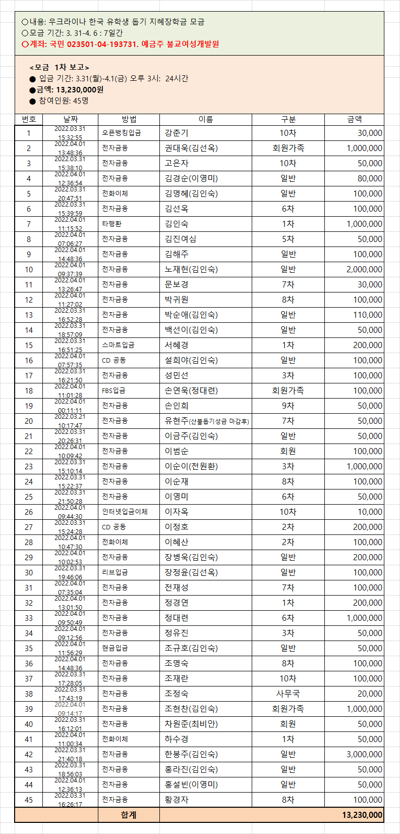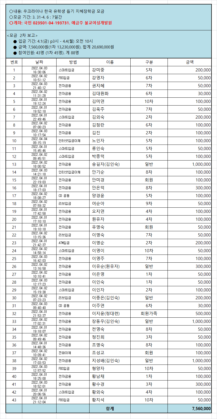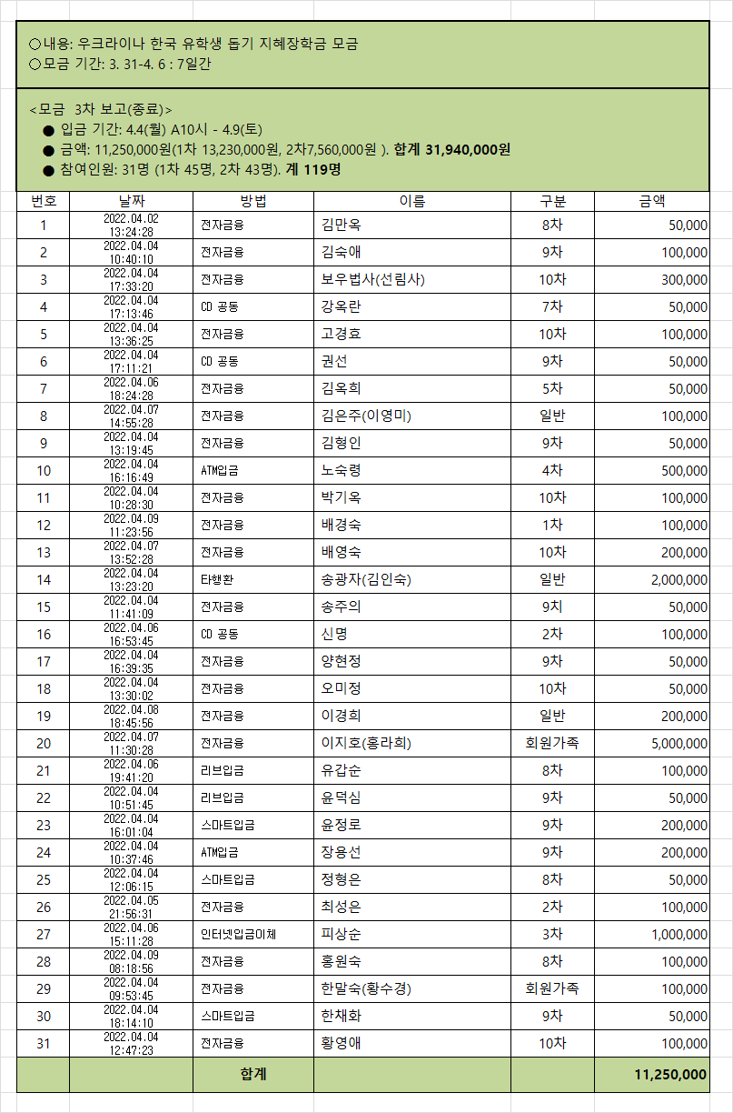 ¿î¿µÀ§¿øÈ¸¿¡¼´Â ¿ìÅ©¶óÀ̳ª ÇлýµéÀ» À§ÇÑ ÁöÇýÀåÇбÝÀ» ¸ð±ÝÇÏ¿© ¾î·Á¿î Çлýµé¿¡°Ô 1Àδç 100¸¸¿øÀÇ Çкñ¸¦ Áö¿øÇÏÀÚ´Â Àǰ߿¡ ÇÕÀÇÇÏ¿´½À´Ï´Ù.(¿¹, 500¸¸¿øÀ̸é 5¸í¿¡°Ô Áö±Þ) ȸ¿ø ¹× ºÒÀÚ ¿©·¯ºÐÀÇ ¸¹Àº µ¿ÂüÀ» ºÎʵ右´Ï´Ù.