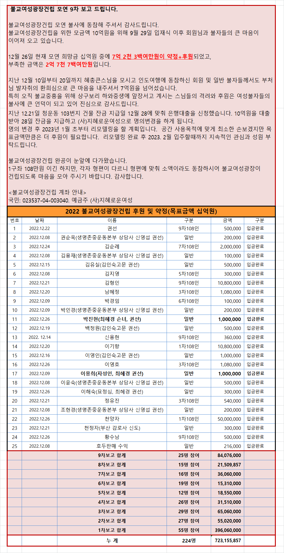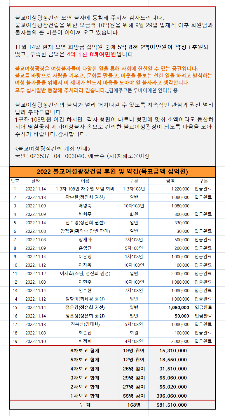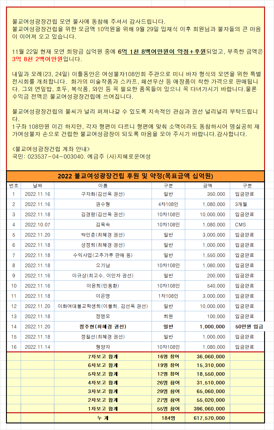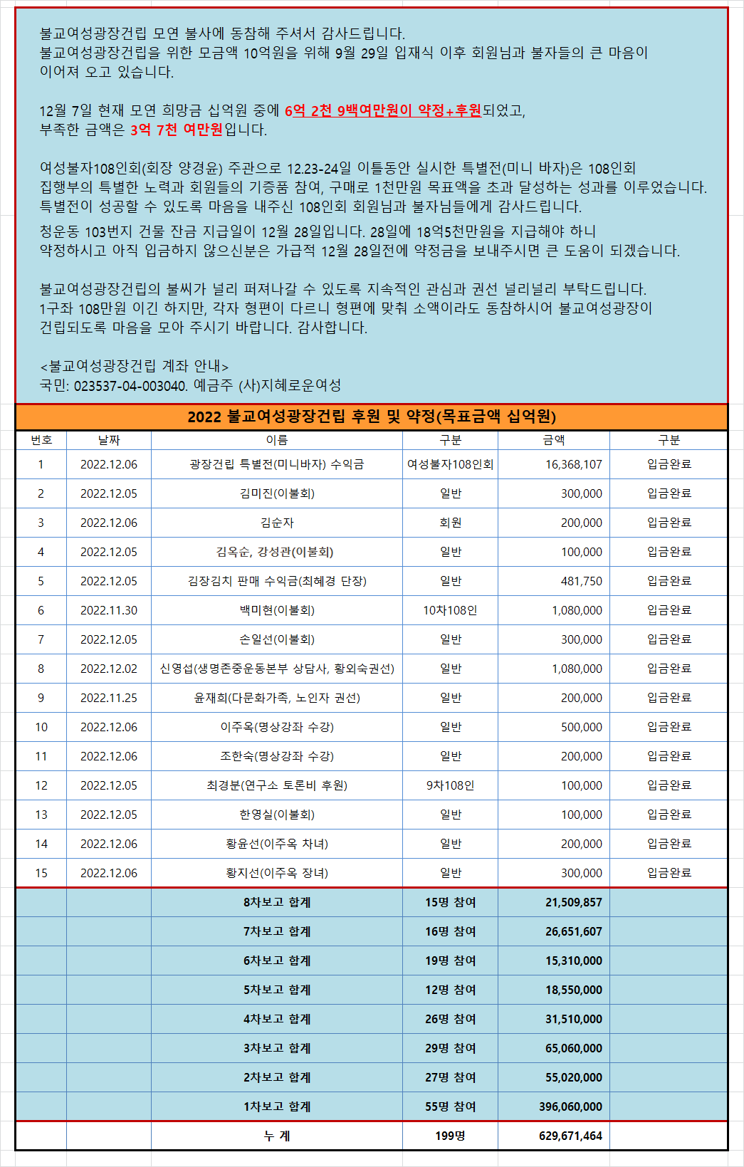12¿ù 7ÀϱîÁö ±¤Àå°Ç¸³ ÈÄ¿ø ¹× ¾àÁ¤Àº 21,509,857¿ø ÀÔ´Ï´Ù.