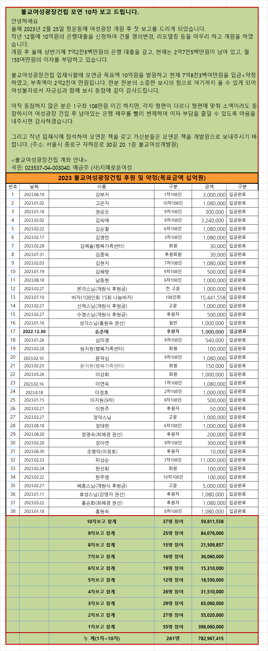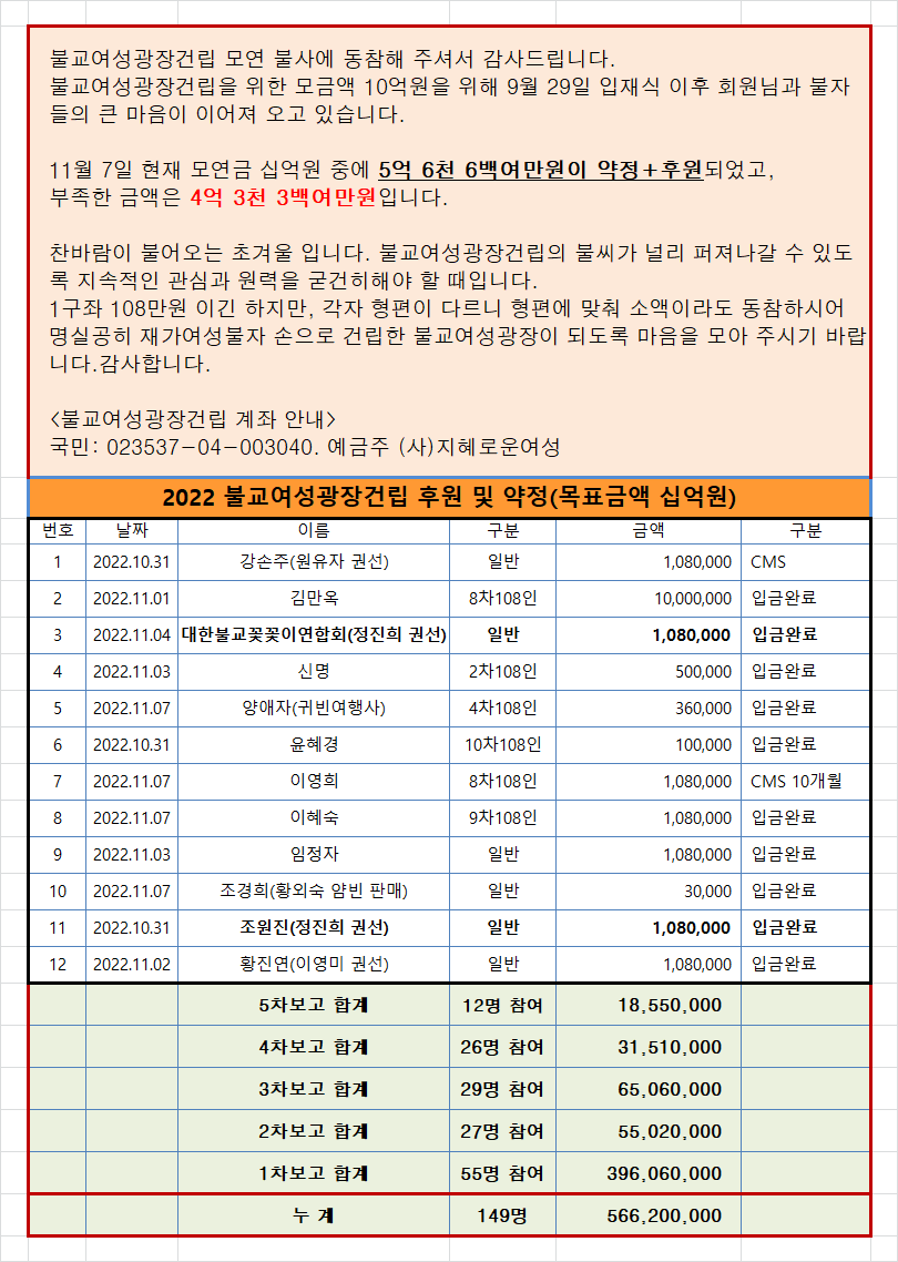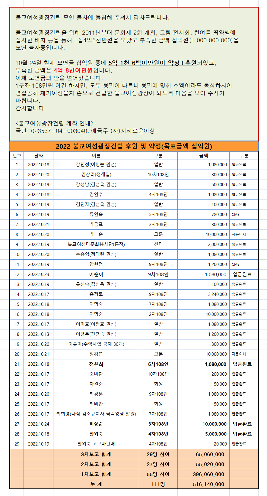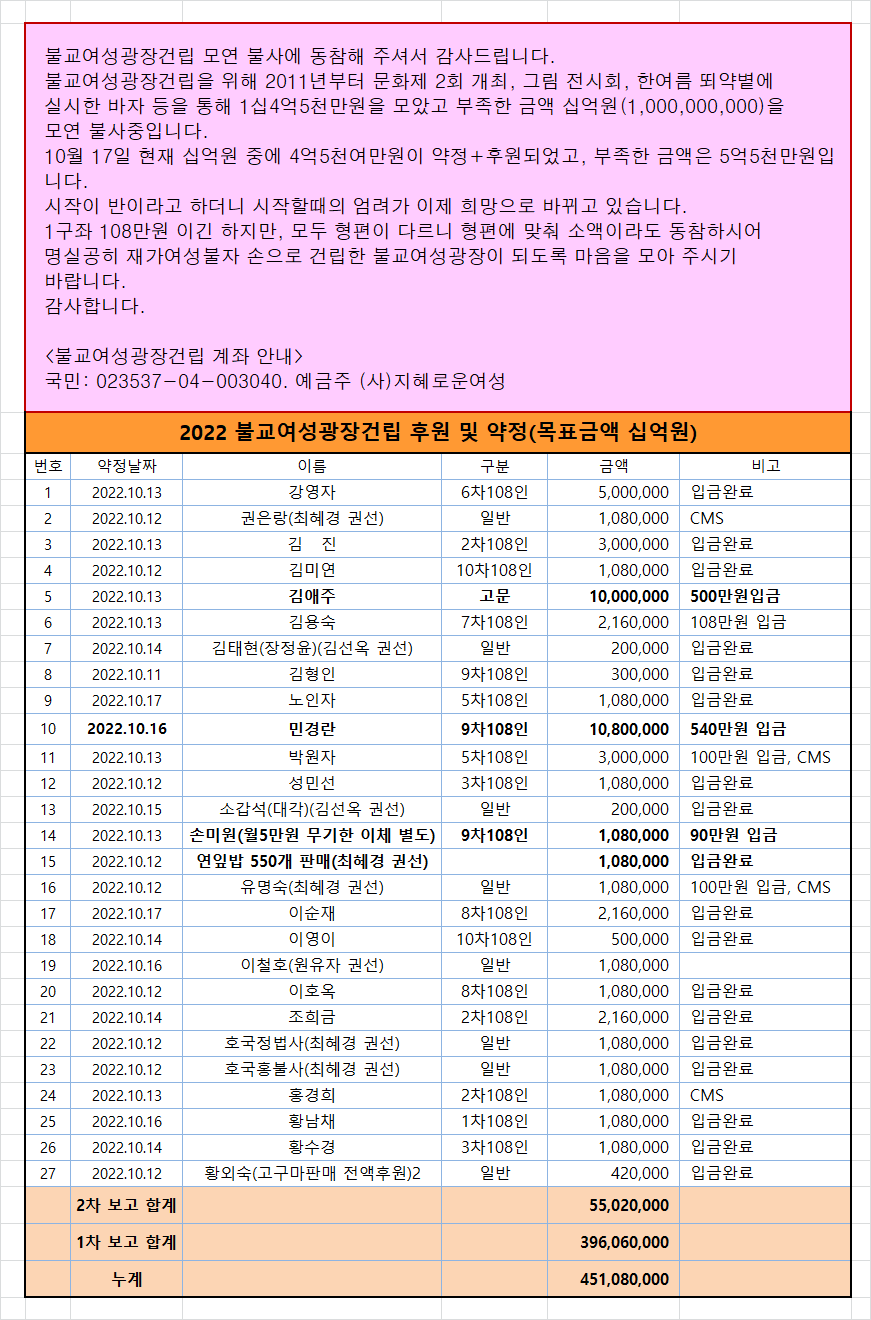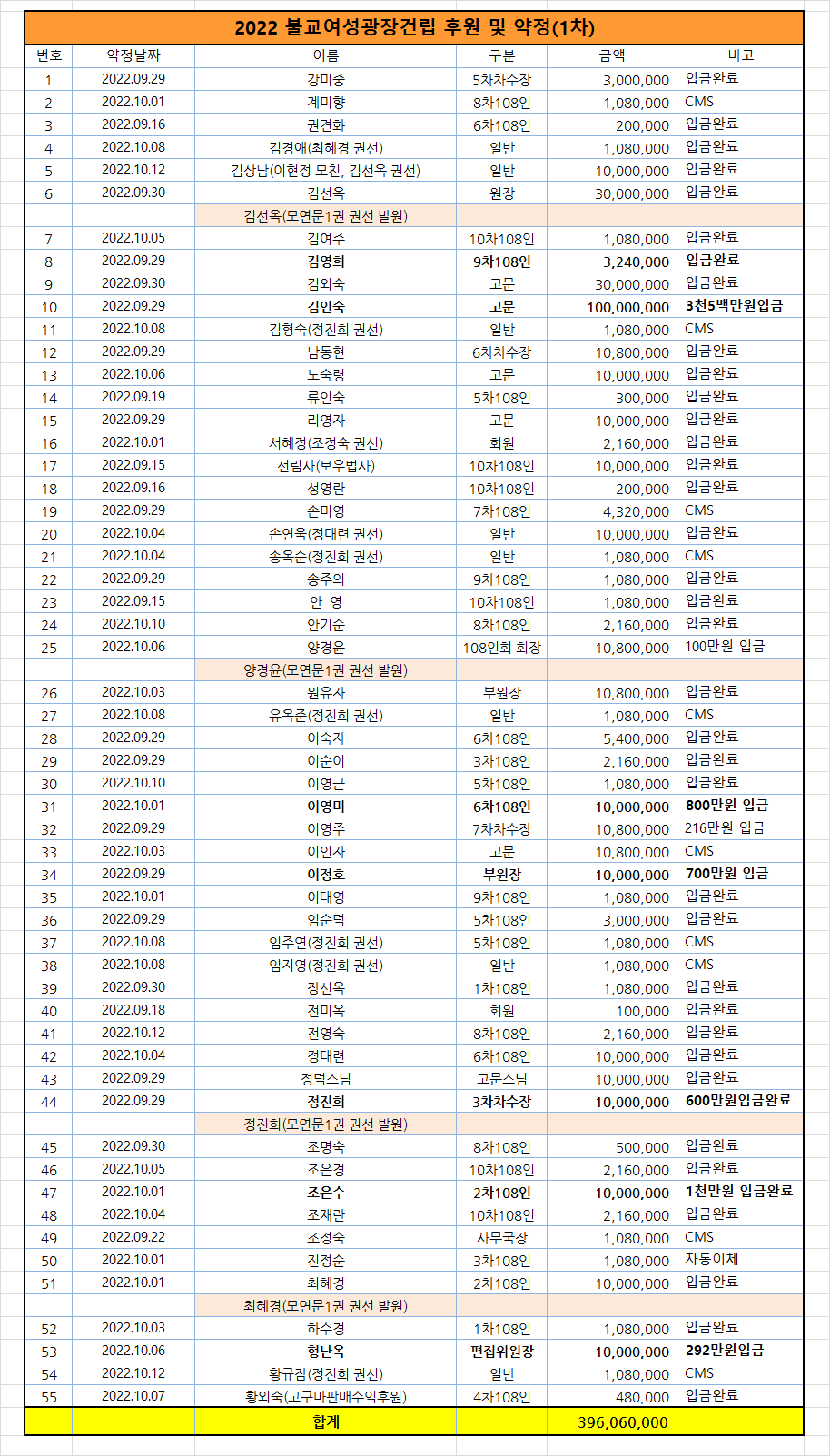 10¿ù 12ÀÏ ¿ÀÀü±îÁö ±¤Àå°Ç¸³ ÈÄ¿ø ¹× ¾àÁ¤Àº ÃÑ 396,060,000 ¿øÀÔ´Ï´Ù.