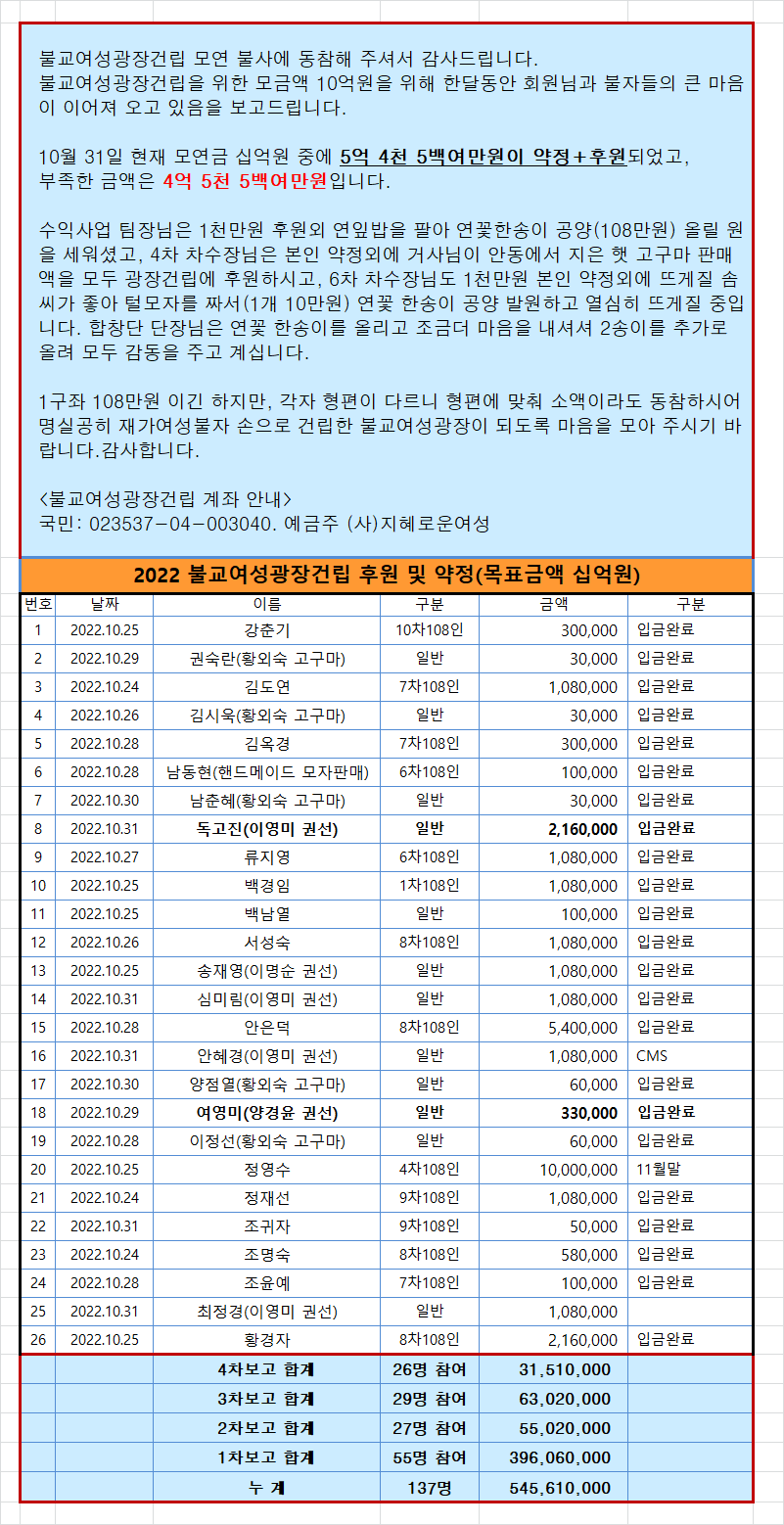 Áö³ 9¿ù 29ÀÏ ºÒ±³¿©¼º°³¹ß¿ø ºÒ±³¿©¼º±¤Àå°Ç¸³ ÀÔÀç½Ä ÀÌÈÄ ¸¹Àº ºÐµéÀÌ ±¤Àå°Ç¸³±Ý ±â±Ý ÈÄ¿ø°ú ¾àÁ¤À» ÇØÁּż °¨»çµå¸³´Ï´Ù.