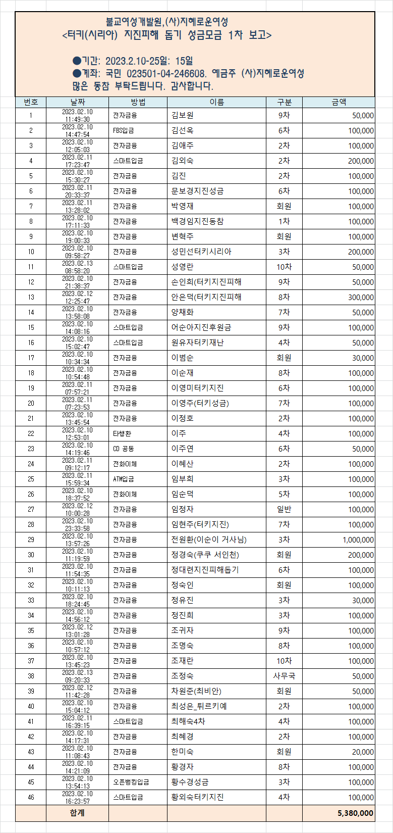 2¿ù 6ÀÏ Àü¼¼°è¸¦ ³î¶ó°ÔÇÑ ÅÍŰ, ½Ã¸®¾Æ ´ëÁöÁøÀÇ ¾ÈŸ±î¿î ´º½º¸¦ º¸°í ºÒ±³¿©¼º°³¹ß¿ø¿¡¼´Â º¸»ìÀÇ ¸¶À½À¸·Î ÈÄ¿ø±ÝÀ» ¸ð¾Æ ÁöÁøÇÇÇØ±¹À» µ½°íÀÚ ÇÕ´Ï´Ù.