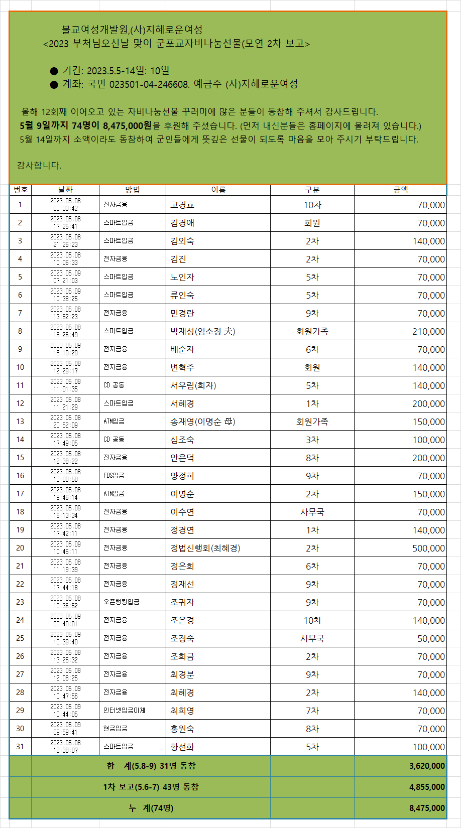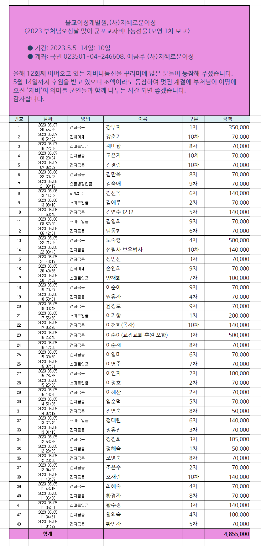 1. ¸ð±Ý±â°£: 2023.5. 5 - 5.14: 10Àϰ£