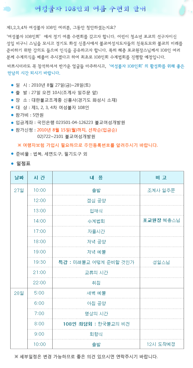 ¿©¼ººÒÀÚ 108ÀÎȸ ¿©¸§ ¼ö·Ãȸ ¾È³»