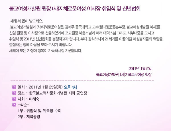 ºÒ±³¿©¼º°³¹ß¿ø ¿øÀå (»ç)ÁöÇý·Î¿î¿©¼º ÀÌ»çÀå ÃëÀÓ½Ä ¹× ½Å³â¹ýȸ |
