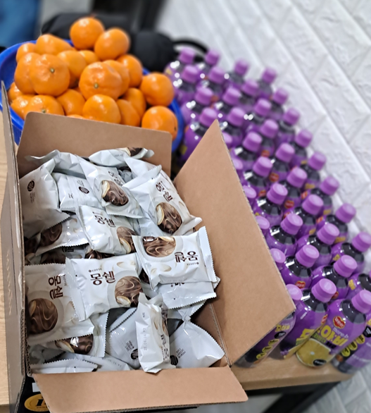 1¿ù 24ÀÏ Ãµ¿ø½Ä´ç¿¡ °úÀÚ¿Í °úÀÏÀ» º¸½ÃÇÏ¿´´Ù. ¶ÇÇÑ ¼³³¯ ¼±¹°·Î ÇѺθð¾î¸°ÀÌ 480°³, ¾È¾ç¼Ò³â¿ø 210°³, ÆÄÁÖ±ººÎ´ë 120°³, ¾çÁÖ±ººÎ´ë 120°³, °íºÀÁß°íµîÇб³¿¡ 200°³ÀÇ Ä«½ºÅ¸µå »§À» ¼±¹°ÇÏ¿´´Ù.