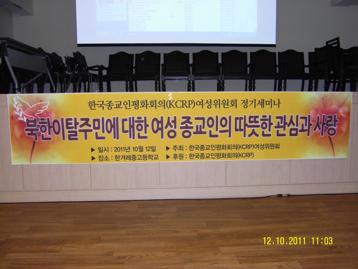 KCRP ¿©¼ºÀ§¿øÈ¸ Á¤±â¼¼¹Ì³ª°¡ 10¿ù 12ÀÏ(¼ö) 11½ÃºÎÅÍ ¿ÀÈÄ 4½Ã±îÁö °æ±âµµ ¾È¼º¿¡ ÀÖ´Â ÇѰܷ¹Áß°íµîÇб³¿¡¼ ÀÖ¾ú½À´Ï´Ù.