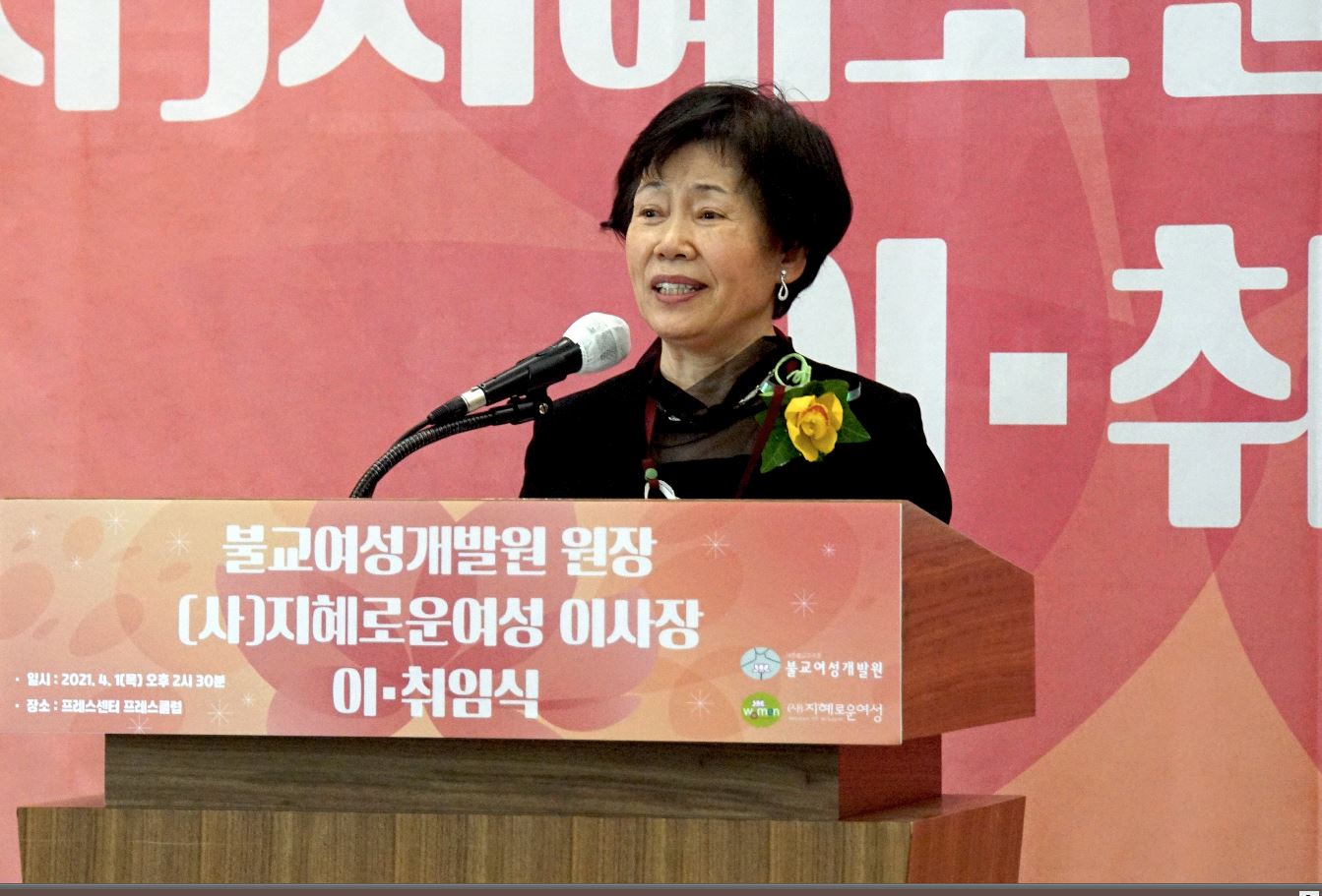 Áö³ 2³â µ¿¾È ºÒ±³¿©¼º°³¹ß¿ø°ú (»ç)ÁöÇý·Î¿î ¿©¼ºÀ» À̲ø¾îÁØ ±è¿Ü¼÷ ¿øÀå, ÀÌ»çÀå°ú ±è¼±¿Á ½ÅÀÓ ºÒ±³¿©¼º°³¹ß¿ø 11´ë ¿øÀå,(»ç)ÁöÇý·Î¿î¿©¼º 8´ë ÀÌ»çÀåÀÇ ÀÌ・ÃëÀÓ½ÄÀÌ 4¿ù 1ÀÏ ¿ÀÈÄ 2½Ã 30ºÐ ÇÁ·¹½º¼¾ÅÍ 20Ãþ ÇÁ·¹½ºÅ¬·´¿¡¼ ¼º·áµÆ´Ù.