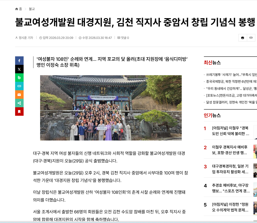 <ºÒ±³½Å¹®> ´ë±¸,°æºÏ(´ë°æ)°æÁö¿ø, ±èõ Á÷Áö»ç Á߾ϼ ⸳ ±â³ä½Ä ºÀÇà